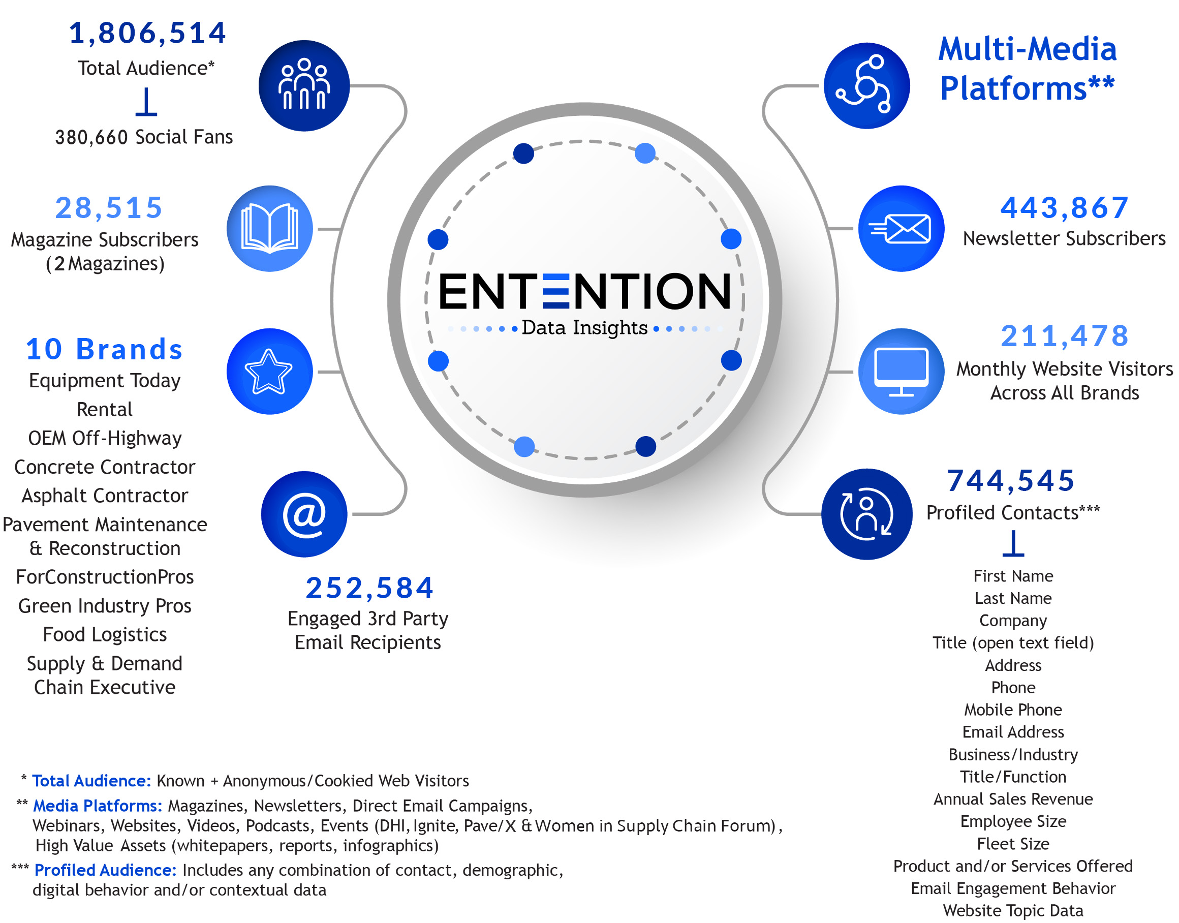 ENTENTION Data Insights is an integrated first-party audience database with unparalleled segmentation capabilities. Therefore, clients benefit from comprehensive segmentation to pinpoint their engaged target audience and validate marketing engagement.